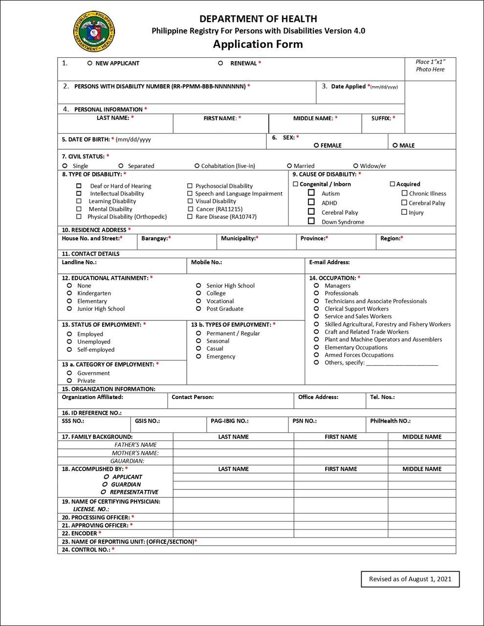 2. Fill out the PWD ID form and submit this to the office, together with all the necessary documents.