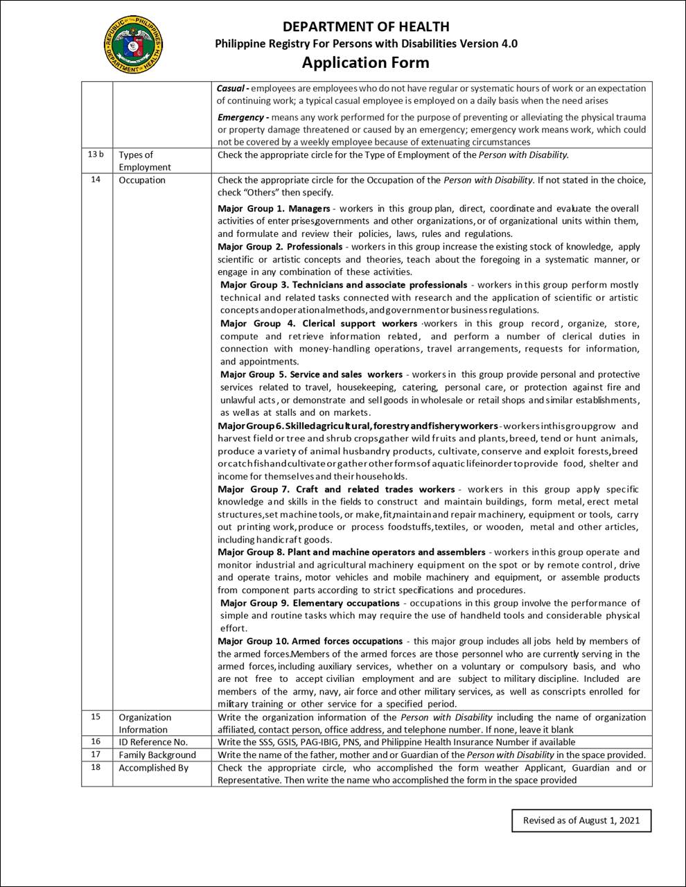 Once you have downloaded the form, you can start entering the required details. These include your personal information, including: full name, date of birth, sex, civil status, type of disability, and cause of disability (inborn, acquired, etc.).